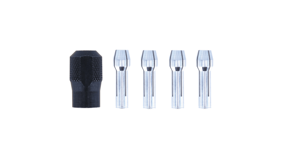 Consigue un mejor agarre de las brocas en nuestra gama de multiherramientas mediante el juego de boquillas Dremel. Con las boquillas 480, 481, 482 y 483, junto con una tuerca de retención de cambio rápido, puedes utilizar fácilmente una amplia variedad de brocas. Este juego de accesorios Dremel contiene 1 tuerca de retención y 4 tamaños distintos de boquillas: 0,8 mm, 1,6 mm, 2,4 mm y 3,2 mm de diámetro. La velocidad máxima recomendada es de 35 000 rpm.